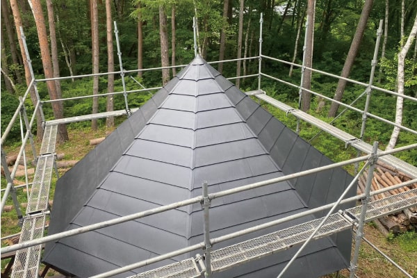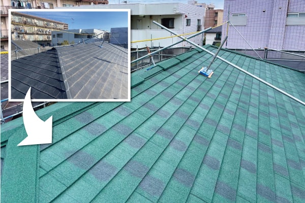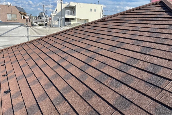 スレート屋根(メンテサイクル10年)を、ジンカリウム鋼鈑(30年ノーメンテ、耐久性・長寿命)にカバー工法にてリニューアル