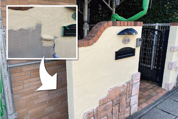 門扉のジョリパットをきれいに。外壁はクリア塗装でお化粧直しと対候性を高めます。
